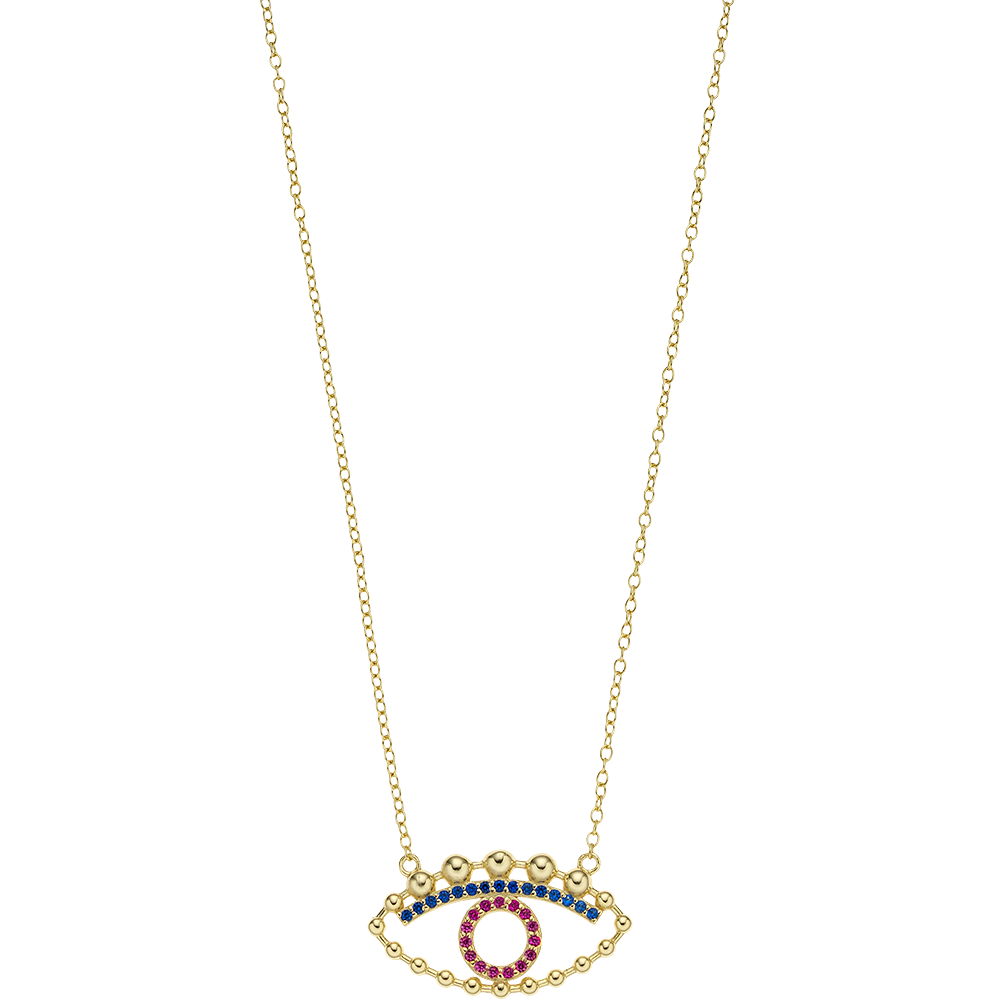 Οι πέτρες ζιργκόν σε μπλε και κόκκινο χρώμα προσθέτουν μια παιχνιδιάρικη και ενδιαφέρουσα πινελιά, ενώ το χρυσό του χρώμα προσδίδει λάμψη και φινέτσα. Αυτό το κολιέ είναι η ιδανική επιλογή για σένα, που αναζητάς ένα μοναδικό κόσμημα το οποίο θα αναδείξει το προσωπικό σου στυλ.