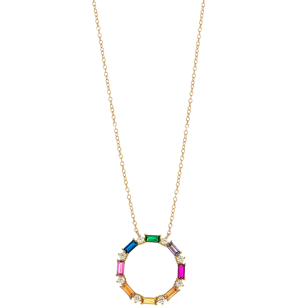 Κατασκευασμένο από λαμπερό 925° ασήμι, αυτό το κολιέ έχει ένα υπέροχο σχέδιο κύκλου με πολύχρωμα ζιργκόν, που ξεχωρίζει!