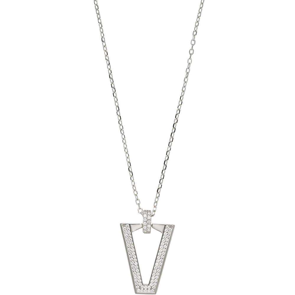 Η λευκή λάμψη των ζιργκόν προσδίδει στο κολιέ μια διακριτική και ακτινοβόλο γοητεία, ενώ το ασημί χρώμα αναδεικνύει τον μοντέρνο χαρακτήρα του. Το σχέδιο του κολιέ ακολουθεί τις τελευταίες τάσεις της μόδας, δίνοντας έναν αέρα φρεσκάδας και σύγχρονης κομψότητας σε κάθε σου εμφάνιση!