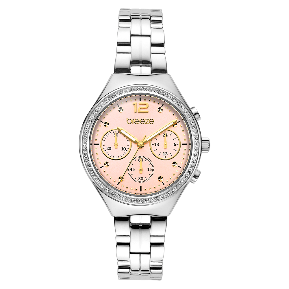 Κάσα από μασίφ ανοξείδωτο ατσάλι υψηλών προδιαγραφών (316L) για ισχυρή αντιοξειδωτική προστασία, εξαιρετική αντοχή στα χτυπήματα και εκπληκτική λάμψη * Στο στεφάνι της κάσας 60 Swarovski κρύσταλλα * Διάμετρος Κάσας 36,0 mm * Πάχος Κάσας 10,50 mm * Χρονογράφος με ενδείξεις 24h, λεπτών και δευτερολέπτων * Καντράν με μεταλλικές ενδείξεις της ώρας, μεταλλικά πλαίσια στις ενδείξεις του χρονογράφου και Aραβική ένδειξη στις 12h * Ανάγλυφο λογότυπο πάνω στην πλάκα του καντράν * Μπρασελέ από μασίφ ανοξείδωτο ατσάλι * Διπλό κούμπωμα ασφαλείας * Βιδωτή κορώνα με ανάγλυφο το "b" του λογοτύπου * Αδιάβροχο στα 100 μέτρα (10 ATM)