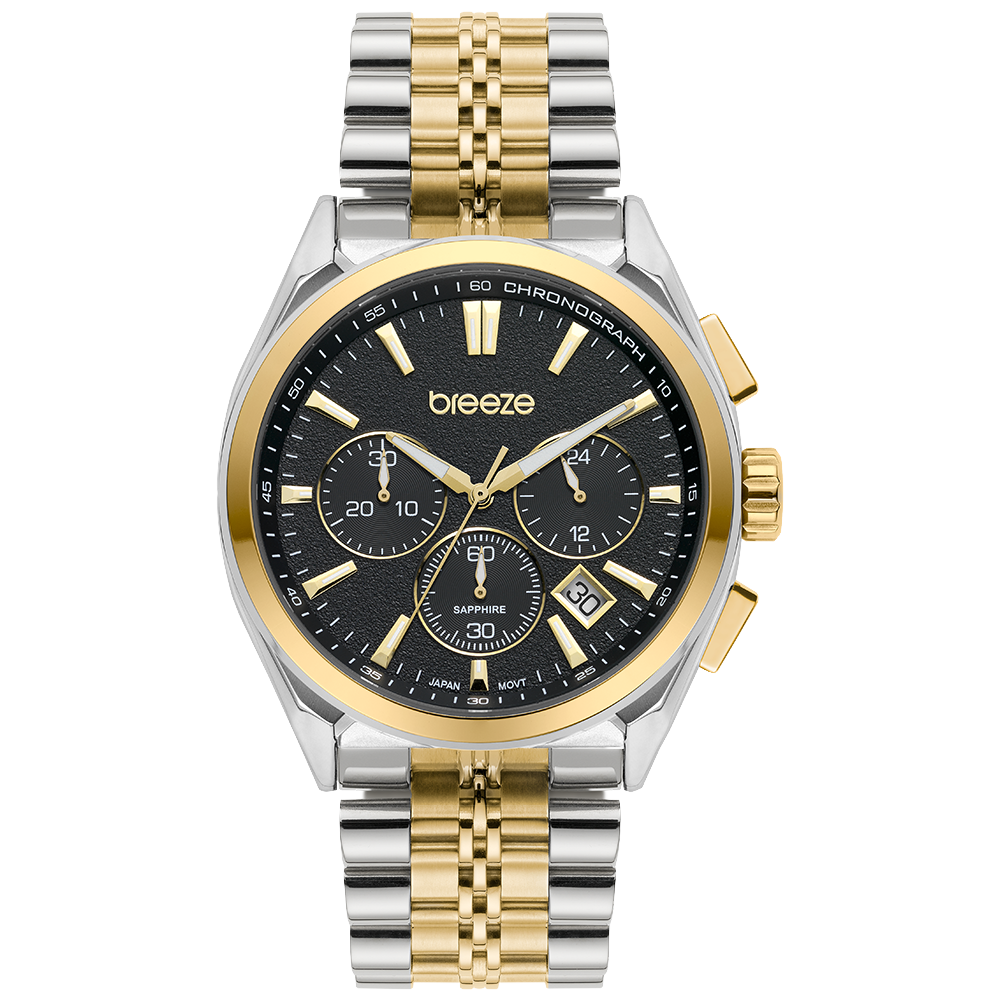 Κάσα από μασίφ ανοξείδωτο ατσάλι υψηλών προδιαγραφών (316L) για ισχυρή αντιοξειδωτική προστασία, εξαιρετική αντοχή στα χτυπήματα και εκπληκτική λάμψη * Διάμετρος κάσας 44,0 mm * Πάχος κάσας 11,0 mm * Κρύσταλλο από Ζαφείρι για υψηλή ανθεκτικότητα και αντοχή στις γρατσουνιές * Χρονόγραφος με ενδείξεις 24h, λεπτών, δευτερολέπτων και ημερομηνίας, μέτρησης λεπτών, δευτερολέπτων (max 30 min) * Μπρασελέ από μασίφ ανοξείδωτο ατσάλι * Διπλό κούμπωμα ασφαλείας με κουμπιά ώθησης * Καντράν με εσωτερική στεφάνη με 12 μεταλλικές ενδείξεις της ώρας, ένδειξη ημερομηνίας στις 4,5h * Ανάγλυφο λογότυπο πάνω στην πλάκα του καντράν * Βιδωτή κορώνα με ανάγλυφο το "b" του λογοτύπου * Αδιάβροχο στα 100 μέτρα (10 ATM)